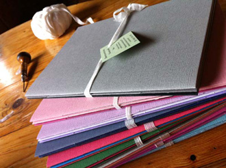 Well, you could think of something that reflects the work of making each set of books: buying the materials – card, paper, paying my friendly local printer to print them up and bind them, wrapping them up in a ribbon, putting the set into a recycled envelope, taking it to my local post office, putting a stamp on it and sending it off on its journey to you.
